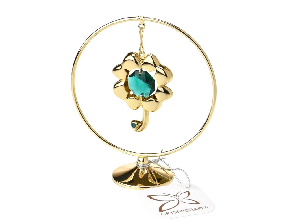 Čtyřlístek v kruhu 8,2 cm - zelený kříšťál