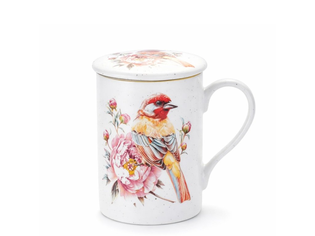 Hrnek 300 ml se sítkem a víčkem - ptáčci