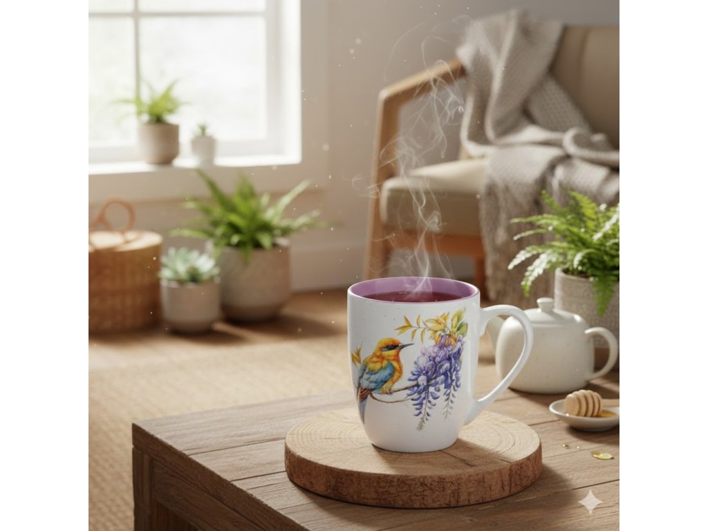 Hrnek 320 ml s ptáčkem v dárkovém papírovém přebalu