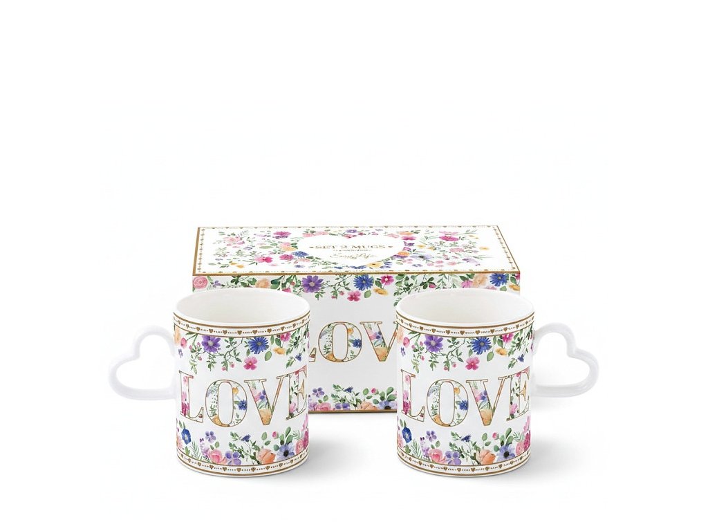 Hrnek 320 ml s uchem ve tvaru srdce - Kvetoucí láska - sada 2 ks