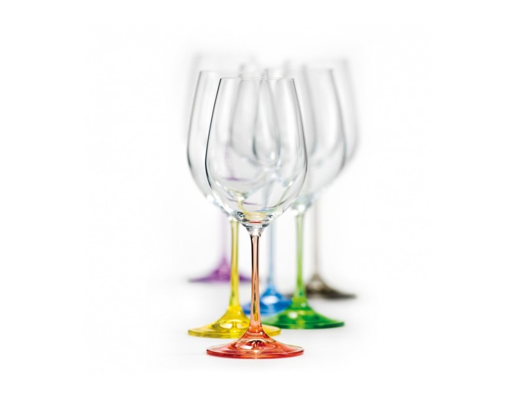 Každý stolující má svou barvu. Technika dekorace stříkáním barev na čirou sklovinu.