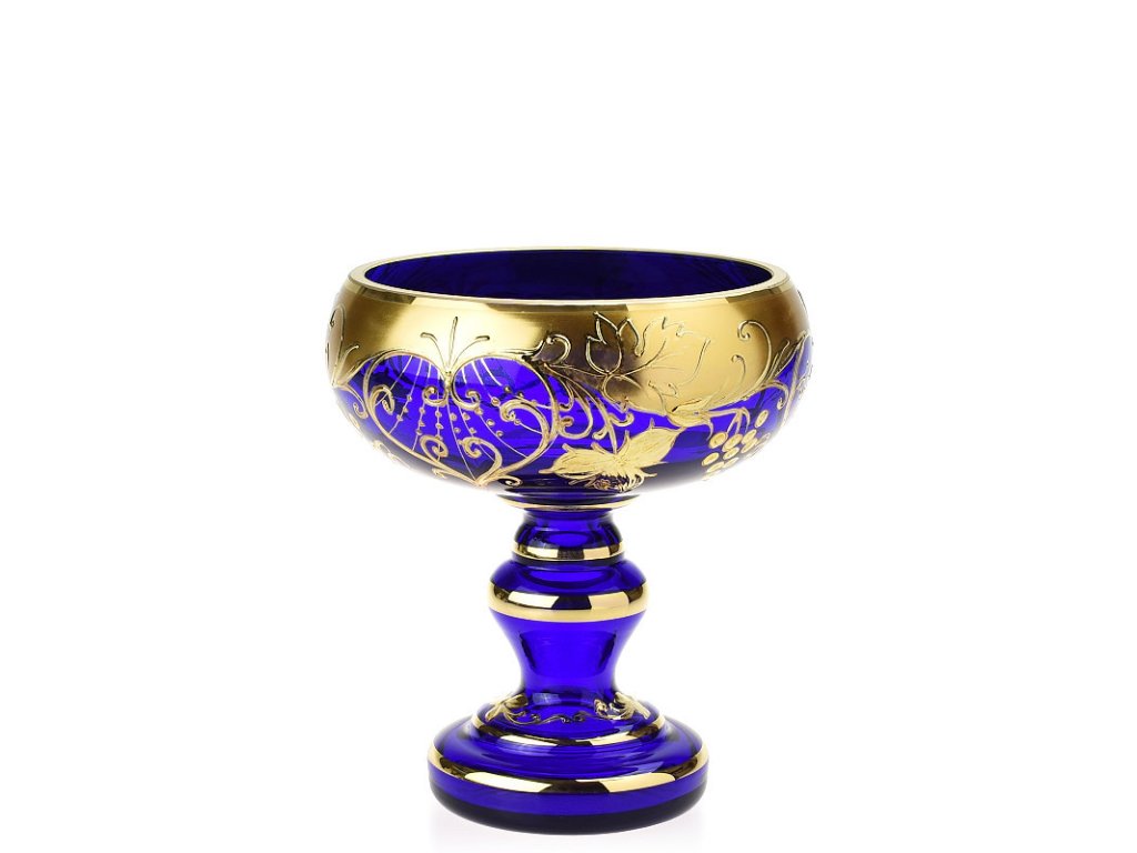 Nástolec 15cm modrý s bohatou dekorací mat/lesk zlato