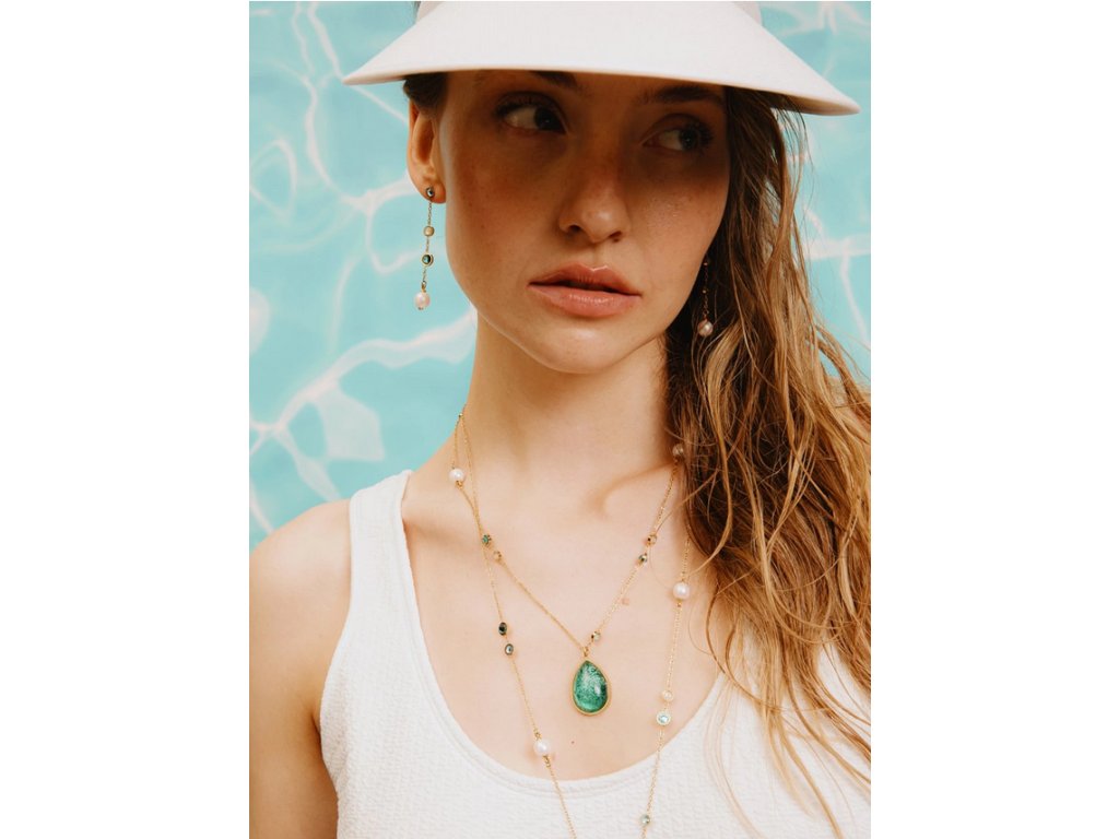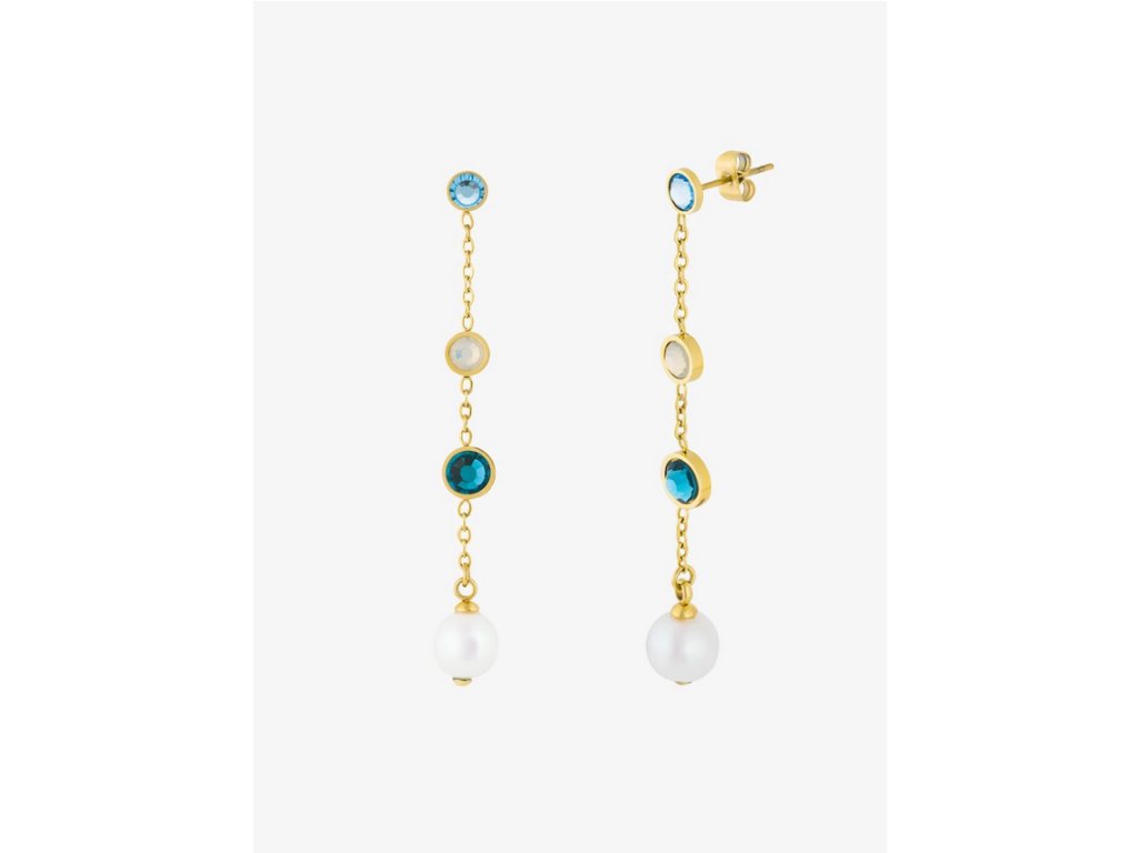 Pozlacené náušnice z chirurgické oceli Lagoon s českým křišťálem a perlemi Preciosa