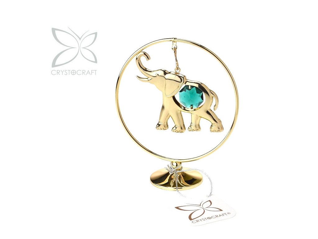 Zlacená kovová figurka, dekorovaná českými křišťály Bohemia.
